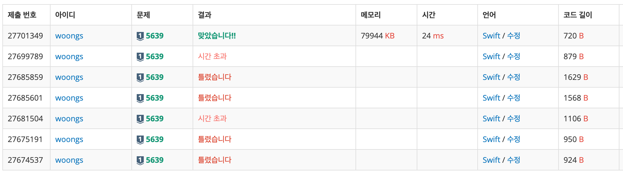 c++로는 이런 식으로 풀어도 통과가 되는 것 같던데 swift는 안 되는건지 제가 뭔갈 잘못했던 것인지를 모르겠네요.. 😢해결방법